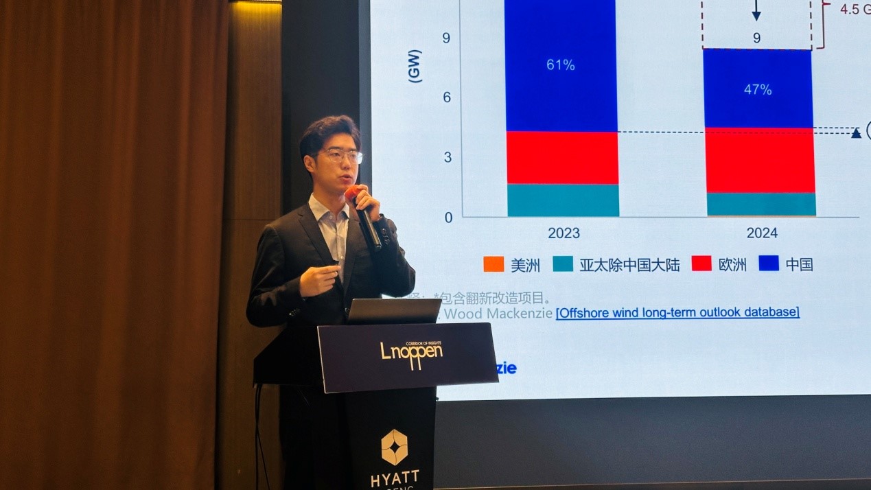伍德麥肯茲海上風(fēng)電市場分析師王宇凡以《全球海上風(fēng)電市場的現(xiàn)實(shí)與機(jī)遇》為題發(fā)表了演講,分享了全球海上風(fēng)電市場現(xiàn)狀、市場的動態(tài)調(diào)整以及未來發(fā)展的關(guān)鍵因素。