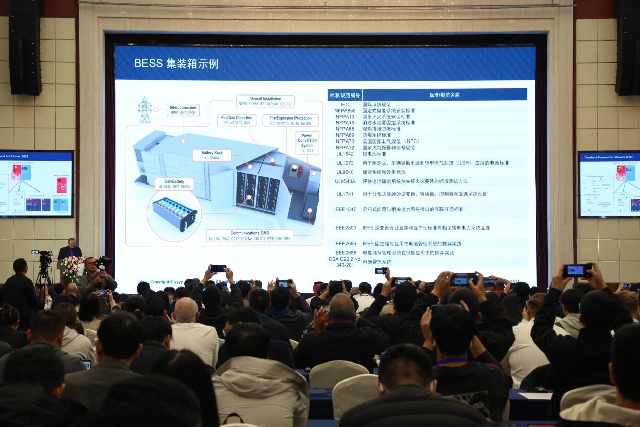 論壇圍繞儲能項目全球合規性展開深入交流。來自美國、澳大利亞、意大利等國的專家,就2026版NFPA 855標準新變化、UL 9540A大規模火災測試、鋰離子儲能系統安全策略、歐洲環保要求及各地電池儲能系統準入規范等議題進行解讀,結合案例闡釋合規設計如何保障系統全生命周期安全,為企業提供了具有全球視野的實踐參考。