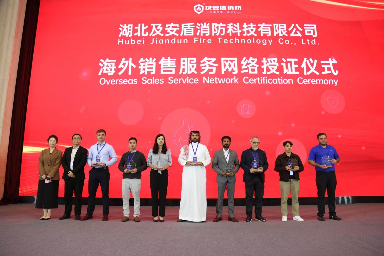 針對全球儲能市場的快速擴張,論壇聚焦項目交付與售后服務。多位專家分享了在沙特、印度、韓國、北美及歐洲等市場的項目經驗與本地化服務實踐,充分展示了及安盾消防與合作伙伴協同提供高效技術支持和售后保障的能力?,F場還舉行了海外銷售服務網絡授證儀式,為北美、歐洲、中東等地區的經銷商授證,致力于構建響應迅速、覆蓋廣泛的全球服務體系。
