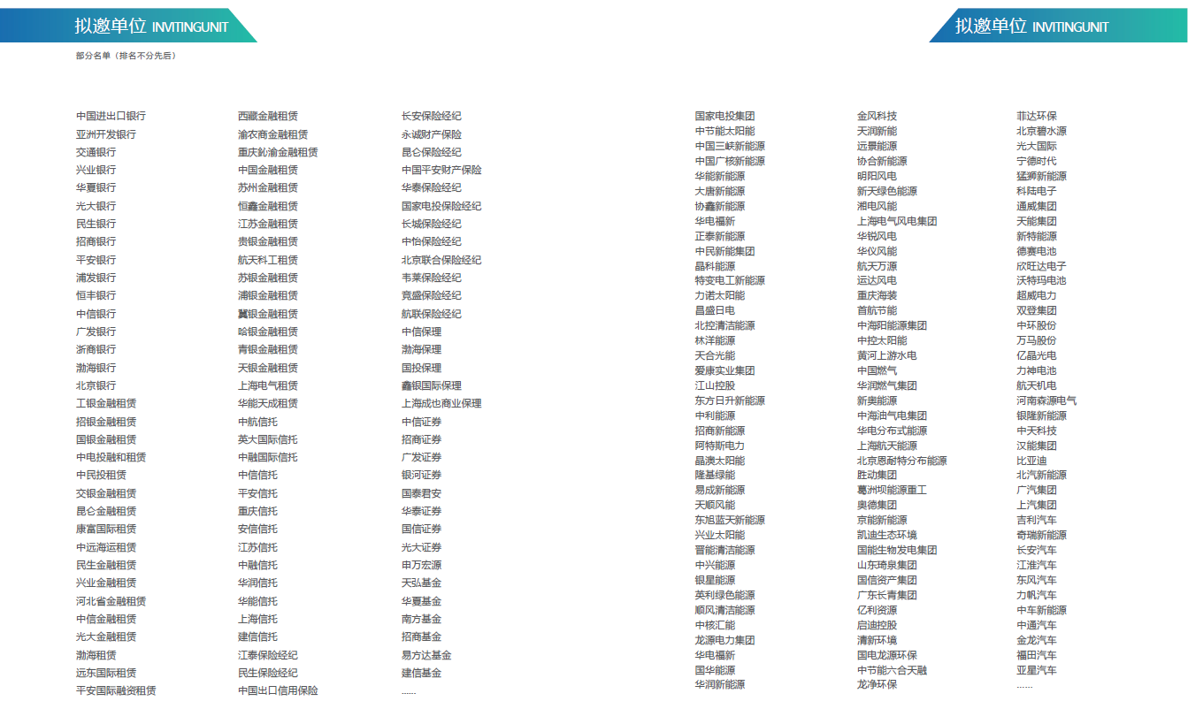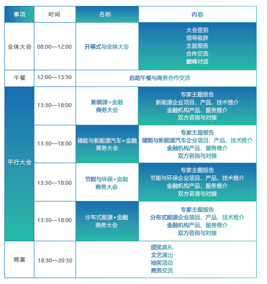 打破常規(guī),創(chuàng)新融合,是“能金會”一大特色。資料顯示,第二界“能金會”共分三大板塊,一是“開幕式與全體大會”,二是“平行大會”,三是“晚宴”,主題清晰、層次分明,而不失“有料”、“有溫度”。其中,“平行大會”分為“新能源+金融商務(wù)大會”、“儲能與新能源汽車+金融商務(wù)大會”、“節(jié)能與環(huán)保+金融商務(wù)大會”和“分布式能源+金融商務(wù)大會”四個(gè)單元,每個(gè)單元分別設(shè)置了專家主題報(bào)告、相關(guān)企業(yè)項(xiàng)目、產(chǎn)品技術(shù)推介、金融機(jī)構(gòu)產(chǎn)品、服務(wù)推介、和雙方咨詢與對接等環(huán)節(jié),將能源與金融業(yè)之間的無縫對接落到了實(shí)處。