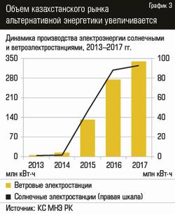 據(jù)NEM RK統(tǒng)計委員會,在過去十年可再生能源發(fā)電的總體比例為8-12%(見。圖1)。高利率相比,在過渡到“綠色”經(jīng)濟的概念,指出 - 的統(tǒng)計數(shù)據(jù)的匯總水,風(fēng)和太陽的能量,只是在最大的水電占幾乎全部來自可再生能源(參見圖2)的電力的功能的結(jié)果。憑心而論,應(yīng)該指出的是,風(fēng)力發(fā)電和太陽能發(fā)電在國內(nèi)有了很大的發(fā)展,在過去幾年中(參見圖3)。只有在2017年,根據(jù)“電力能源和電力市場的運作報告,”哈薩克斯坦電力協(xié)會,在風(fēng)力發(fā)電量達(dá)23.5%,產(chǎn)量的增加,這也讓他們采取的0股,占該國總發(fā)電量的3%。太陽能發(fā)電廠的產(chǎn)量增加 - 占2017年太陽能總發(fā)電量的4%,占0.1%。事實證明,太陽和風(fēng)的總份額僅占該國總發(fā)電量的0.4%,為了實現(xiàn)這一概念的目標(biāo),共和國需要增加可再生能源的數(shù)量。在國家支持替代能源的條件下,這項任務(wù)看起來非常可行。