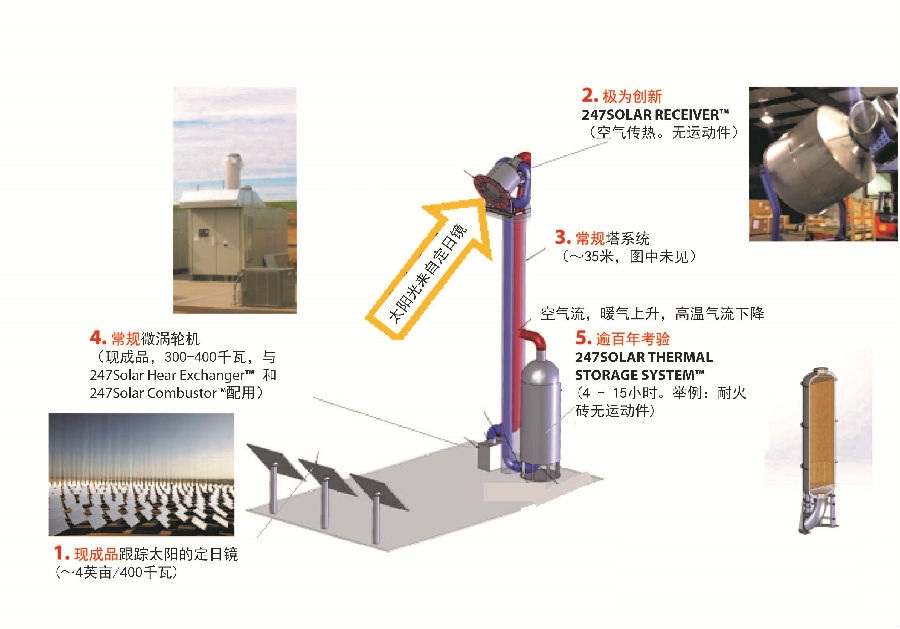 在系統設計方面,太陽能加熱高溫空氣,而非水和蒸汽,作為驅動介質推動燃氣輪機。在熱轉換方面的重大創新,幫助247打破了傳統光熱系統的復雜性和成本的障礙。此外,在電站設計、建設和運營也實現簡化,進一步降低了電站成本,提升了電站開發速度。
